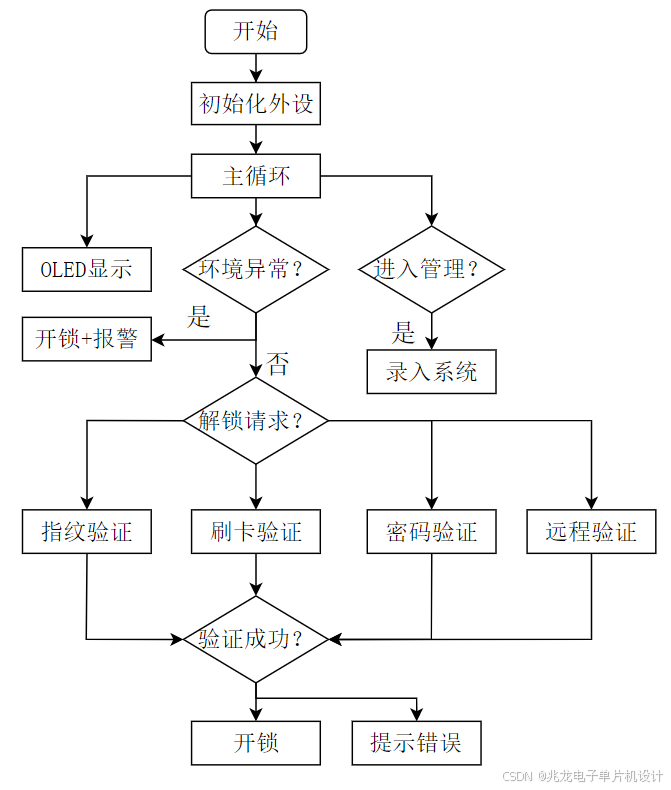 从使用体验与管理效率角度,该系统突破了传统门禁设备的局限:一是实现了多方式认证与多功能联动(如支持人脸、IC 卡、密码、远程授权认证,联动电磁锁控制模块、异常报警模块),无需管理人员现场值守或人工登记,减少人工操作繁琐性与失误率;二是配备 OLED 实时显示模块,直观呈现当前认证状态、出入时间、权限等级及运行模式,同时支持数据自动存储(可通过蓝牙或 WiFi 传输至管理平台 / 移动端 APP),方便管理人员长期追溯出入记录,为安防方案优化及日常管理流程规范提供完整数据支撑;三是新增异常预警与自动调控功能,当监测到某项参数超出安全范围(如非法闯入、设备被拆、门未关严),系统自动触发声光报警(同时向管理终端发送预警信息),并联动电磁锁锁闭、启动视频抓拍或切断非法操作通路,无需人工干预即可及时处理异常,大幅提升了门禁管理的便捷性与安全性。