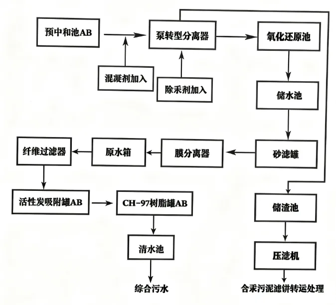 含汞废水首先进入预中和池进行水质调节,确保后续工艺单元稳定运行。向废水中投加混凝剂后,自流至汞转型分离器,通过投加除汞剂使可溶性汞离子转化为固相汞化合物。在分离区完成固液分离后,大部分汞被精准捕获,且该过程中使用的除汞剂可实现自循环利用,有效降低运维成本。