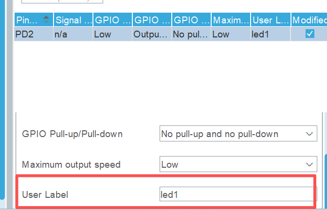 {GPIO_InitTypeDef GPIO_InitStruct = {0};/* USER CODE BEGIN MX_GPIO_Init_1 *//* USER CODE END MX_GPIO_Init_1 *//* GPIO Ports Clock Enable */__HAL_RCC_GPIOA_CLK_ENABLE();/*Configure GPIO pin Output Level */HAL_GPIO_WritePin(led0_GPIO_Port, led0_Pin, GPIO_PIN_RESET);/*Configure GPIO pin : led0_Pin */GPIO_InitStruct.Pin = led0_Pin;GPIO_InitStruct.Mode = GPIO_MODE_OUTPUT_PP;GPIO_InitStruct.Pull = GPIO_PULLUP;GPIO_InitStruct.Speed = GPIO_SPEED_FREQ_LOW;HAL_GPIO_Init(led0_GPIO_Port, &GPIO_InitStruct);/*Configure GPIO pin : key1_Pin */GPIO_InitStruct.Pin = key1_Pin;GPIO_InitStruct.Mode = GPIO_MODE_INPUT;GPIO_InitStruct.Pull = GPIO_NOPULL;HAL_GPIO_Init(key1_GPIO_Port, &GPIO_InitStruct);/* USER CODE BEGIN MX_GPIO_Init_2 *//* USER CODE END MX_GPIO_Init_2 */