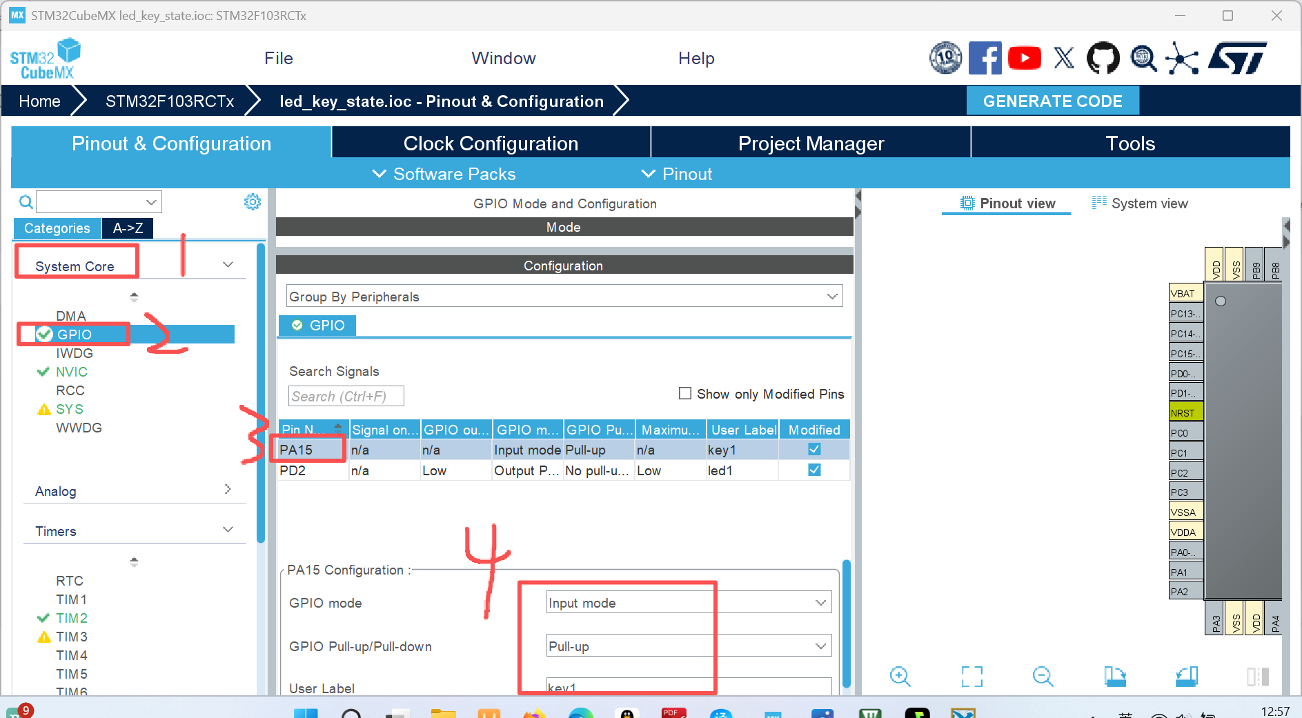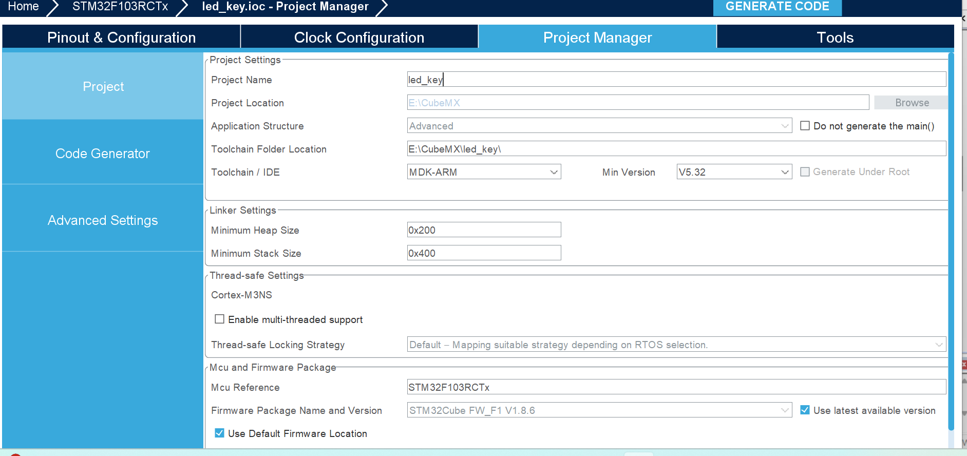 STM32F103RCT6+STM32CubeMX+keil5(MDK-ARM)+Flymcu完成轮询方式检测按键