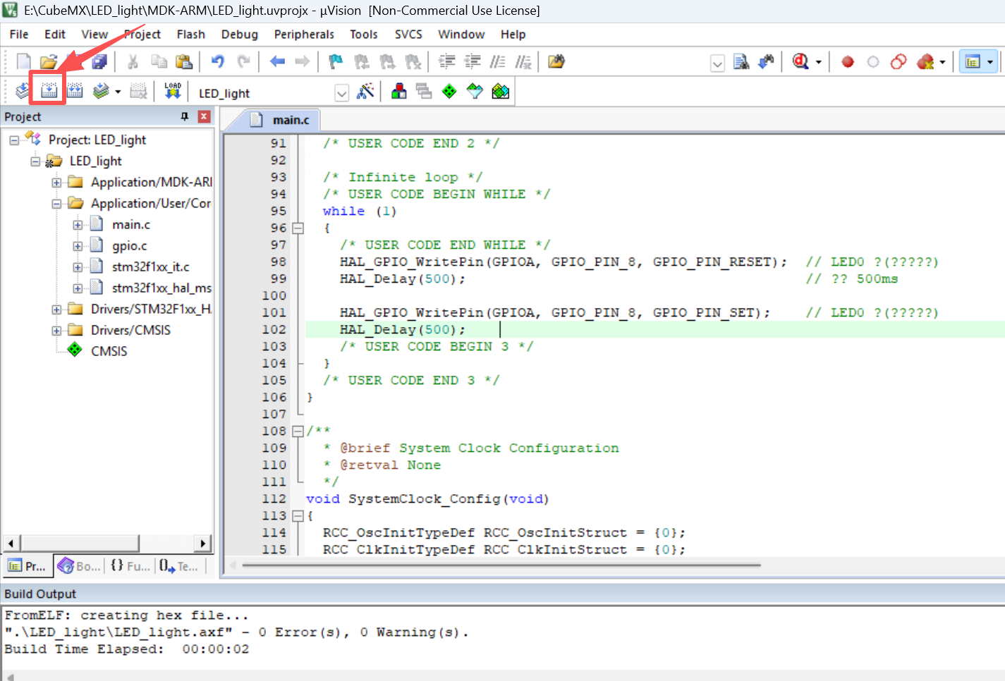 uint8_t led_state = 0; HAL_GPIO_WritePin(GPIOA, GPIO_PIN_8, GPIO_PIN_SET); // ???while (1)