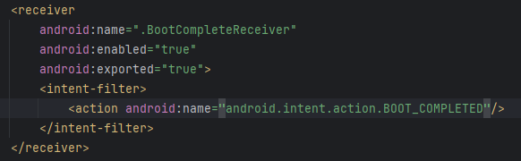 <uses-permission android:name="android.permission.RECEIVE_BOOT_COMPLETED"/>