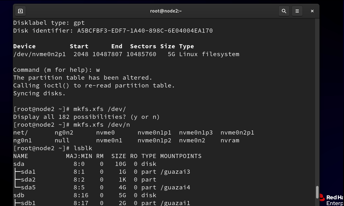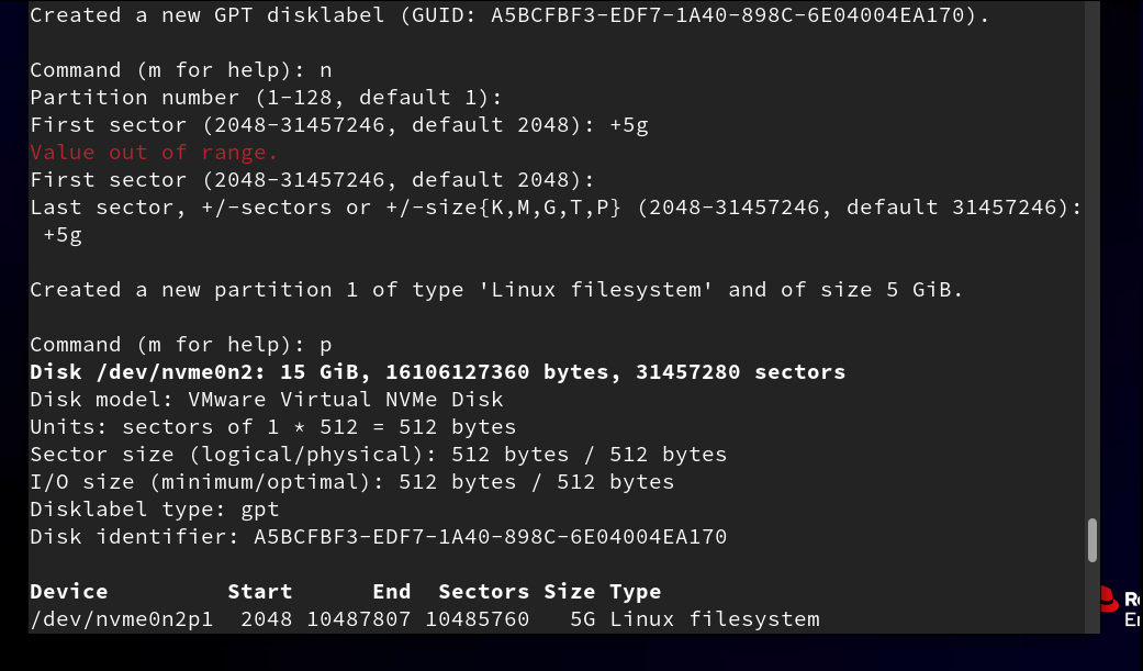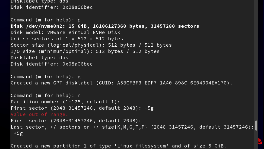 /dev/nvme0n2p1 2048 4196351 4194304 2G 83 Linux #