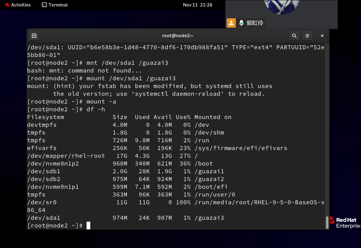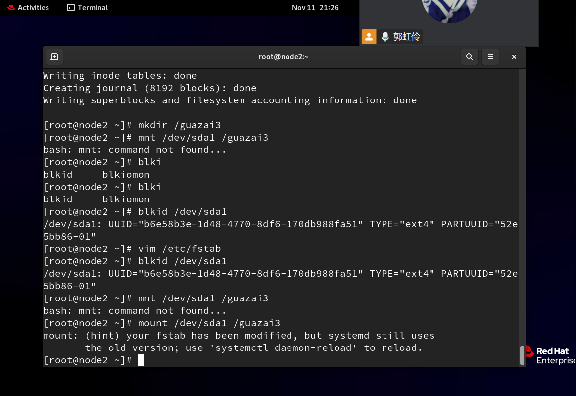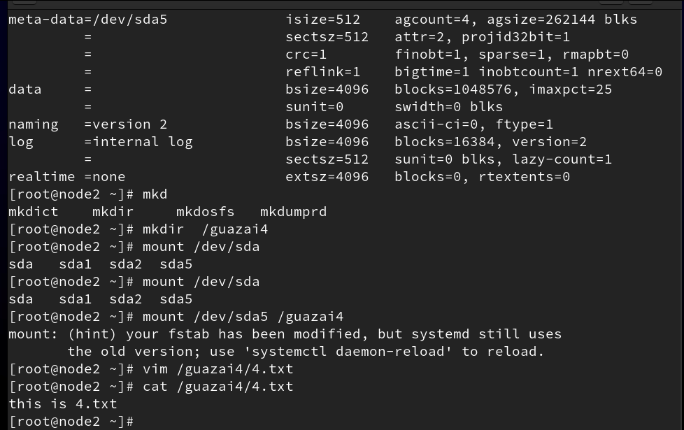 #2、mount -a 命令会检查 /etc/fstab 文件中的每一行,如果找到尚未挂载的文件系统,则会按照其中的设定自动挂载它们。这个命令通常在系统启动时自动执行,以确保所有在 fstab 文件中列出的文件系统都正确挂载