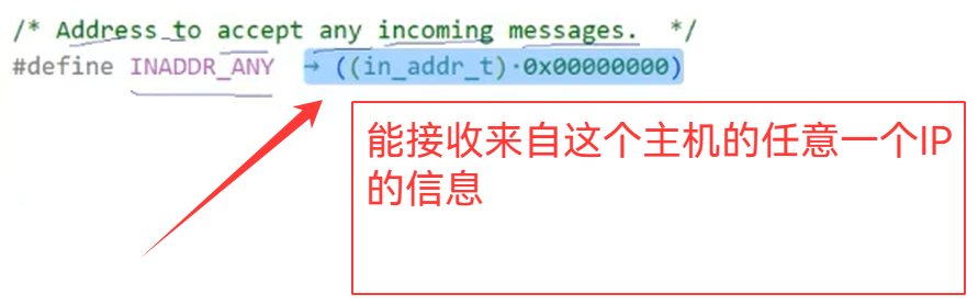 public:InetAddr(){}InetAddr(const struct sockaddr_in& addr):_net_addr(addr){PortNetToHost();IpNetToHost();}InetAddr(uint16_t port):_port(port){_net_addr.sin_family = AF_INET;_net_addr.sin_port = htons(_port);_net_addr.sin_addr.s_addr = INADDR_ANY;}struct sockaddr* NetAddr(){return CONV(&_net_addr);}socklen_t NetAddrLen(){return sizeof(_net_addr);}std::string Ip(){return _ip;}uint16_t Port(){return _port;}~InetAddr(){}