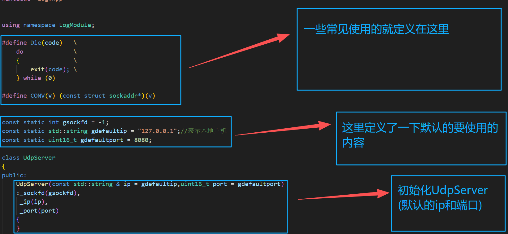 const static uint16_t gdefaultport = 8080;class UdpServer