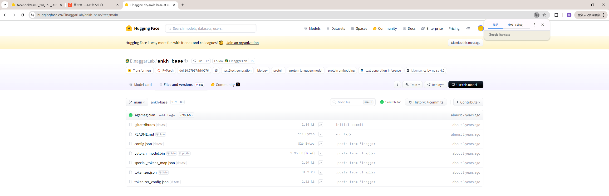 因为打算部署这篇论文中的三个模块:ChemBERTa、ESM2、Ankh,所以遇到一些问题,其中尤其是Ankh这个板块比较麻烦。