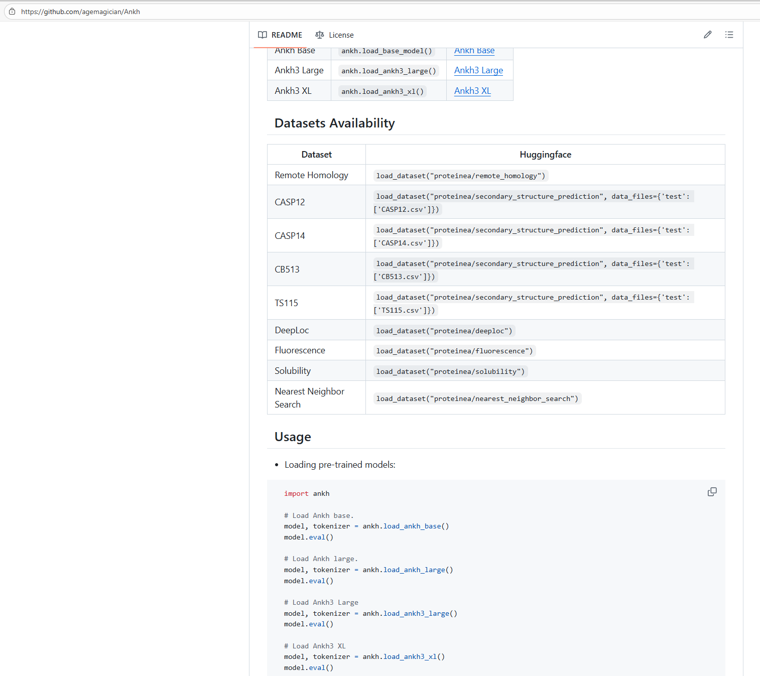 ankh的官网链接是这个:agemagician/Ankh: Ankh: Optimized Protein Language Model