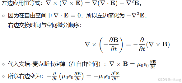 4) 同样,对安培定律取旋度可以得到磁场的波动方程: