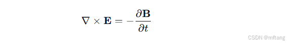数学原理:电场的旋度正比于磁场随时间的变化率的负值。旋度算子 (∇×∇×) 衡量了场在一点上的旋转倾向。这个方程说明了变化的磁场会感生出涡旋电场(这就是发电机和变压器的原理)