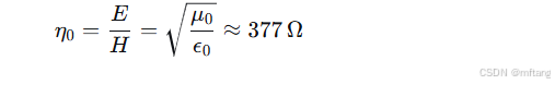 在自由空间中,电场与磁场的幅度之比是一个常数,称为本征阻抗: