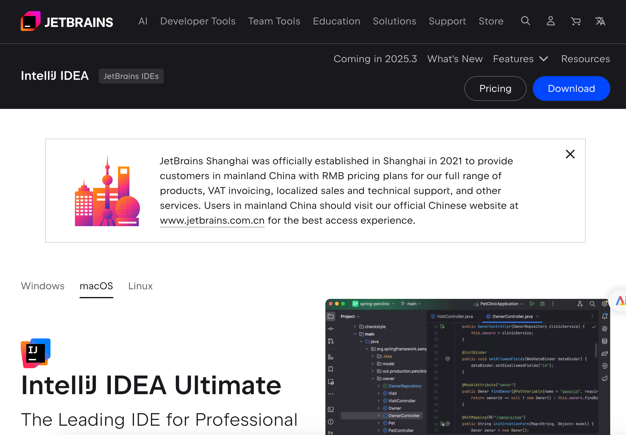 - Ultimate(付费版):支持完整功能(Web开发、数据库工具等),适用于企业用户。