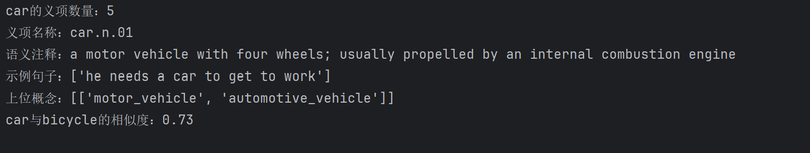 WordNet的灵魂是“同义词集合(Synset)”——它将表达同一核心词义的多个词形归为一组,形成语义的“基本单元”。例如,“car”“automobile”“motorcar”被纳入同一Synset,共同指向“四轮机动车”这一核心概念。每个Synset配备唯一的注释(Gloss)和例句,用于区分易混淆的语义,如“bank”的两个核心Synset分别注释为“a financial institution that accepts deposits and makes loans”(金融机构)和“the land alongside or sloping down to a river or lake”(河岸)。