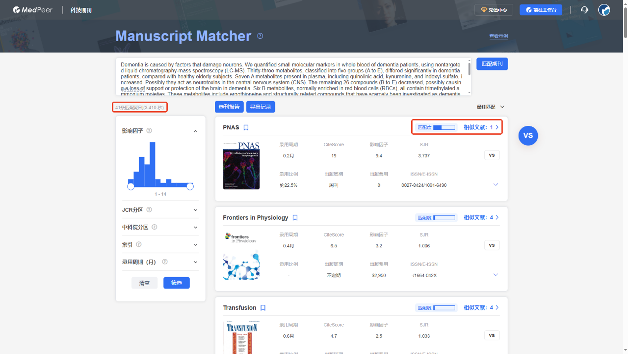 - 智能选刊:通过标题/摘要自动匹配投稿期刊,并提供相似文献参考。