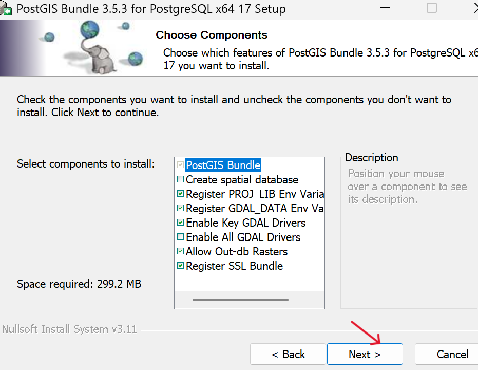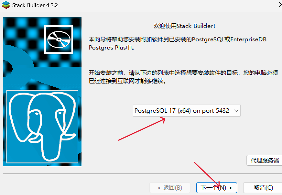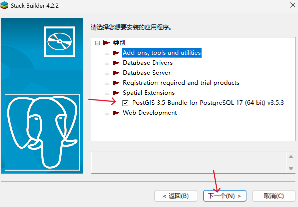 安装:选择安装postGIS插件版本,安装地址要和postgresql的安装路径一致,接下来,一路默认安装即可。