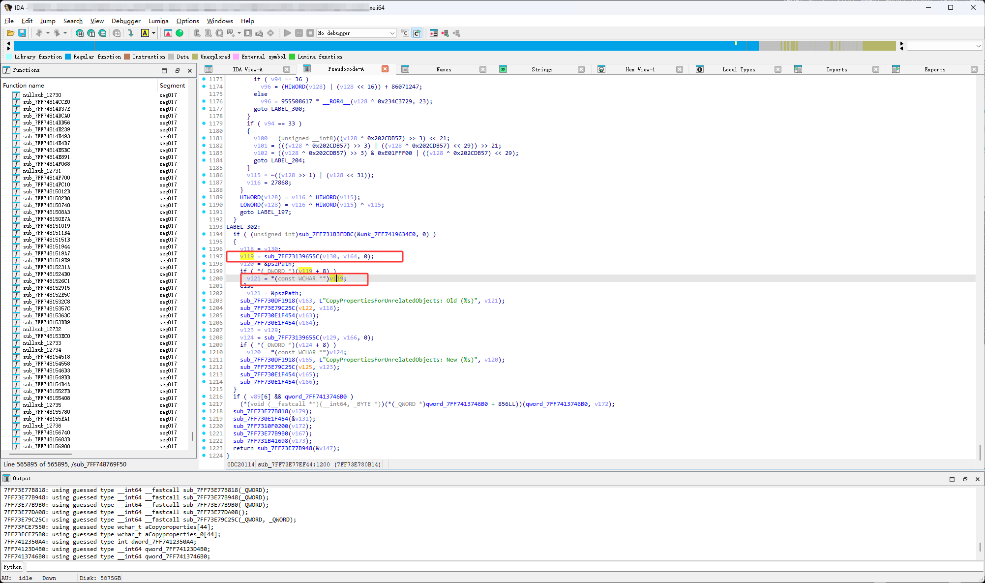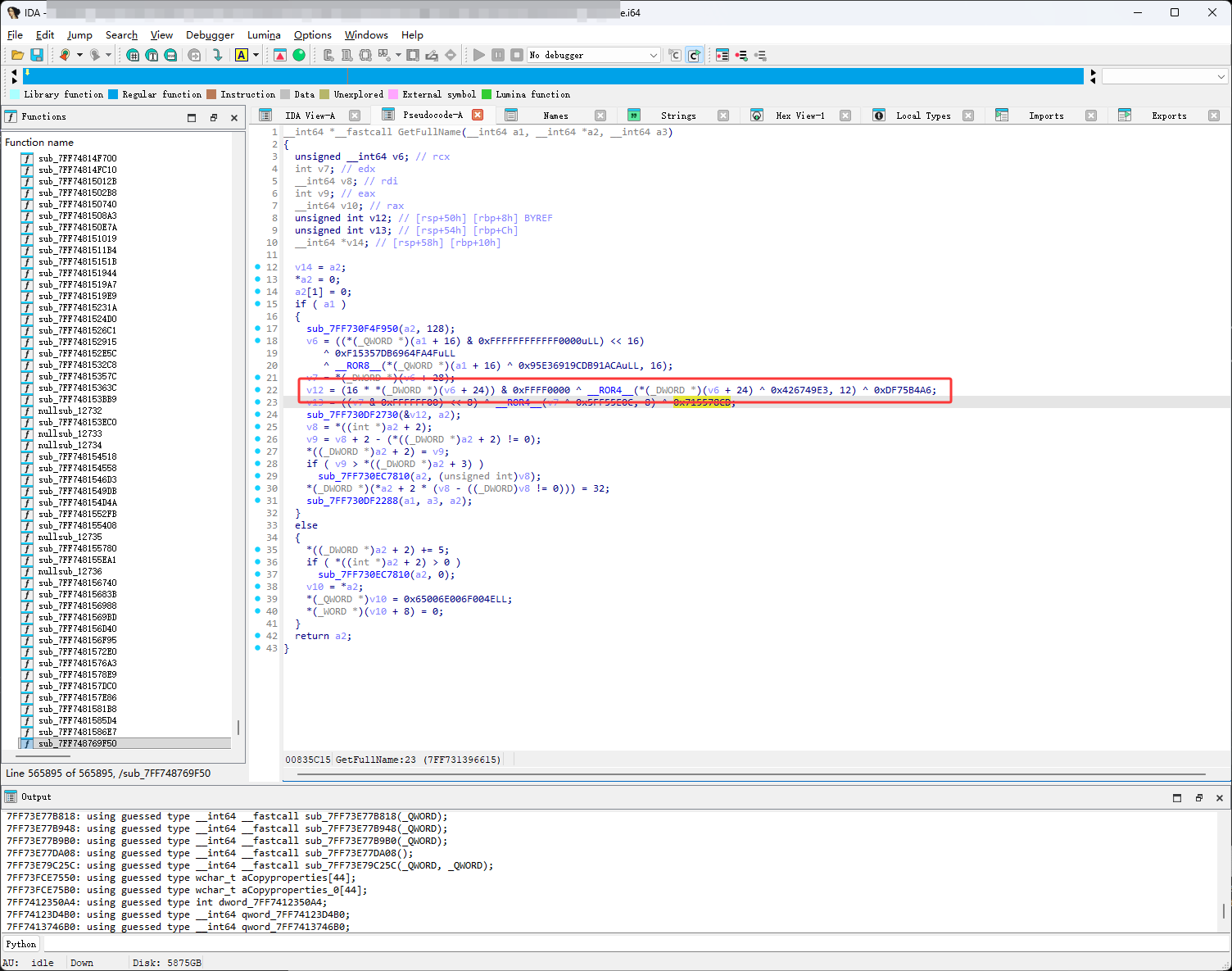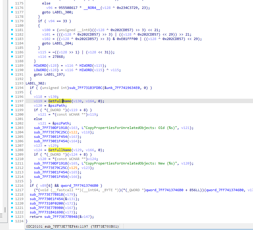 如下图红框v121的值来自于v119,然后v119的值来自于sub_7FF73139655C(v130, v164, 0);,所以sub_7FF73139655C是GetFullName