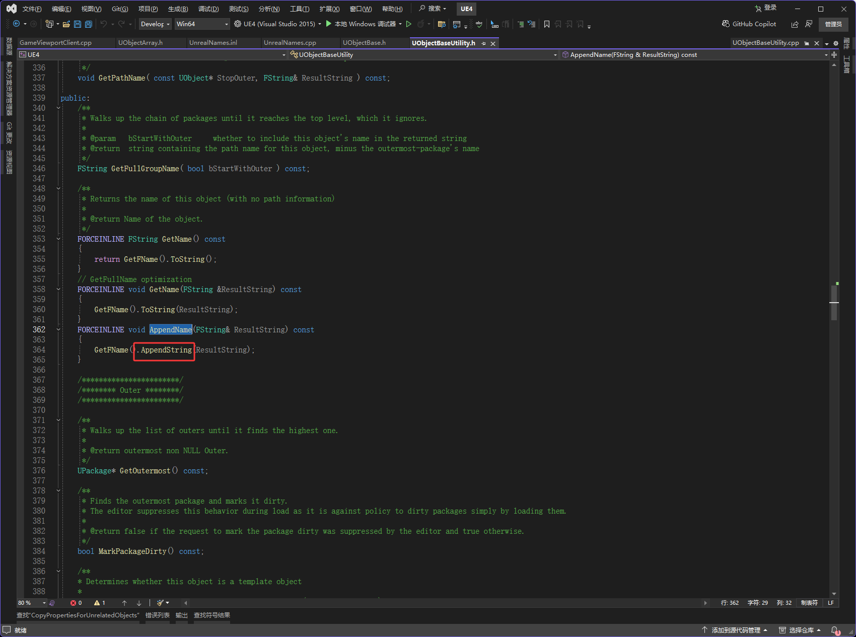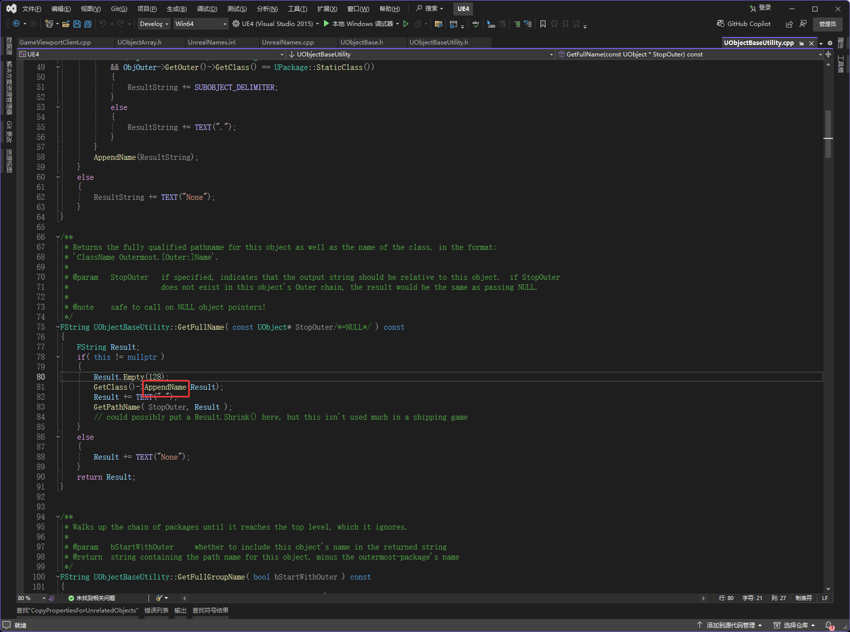 然后就还剩下Name了,也就是GName,也是FName,也是NamePrivate,它有很多名字,看起来就很乱,但它们都是一个东西,GName它在下图红框的AppendName函数中