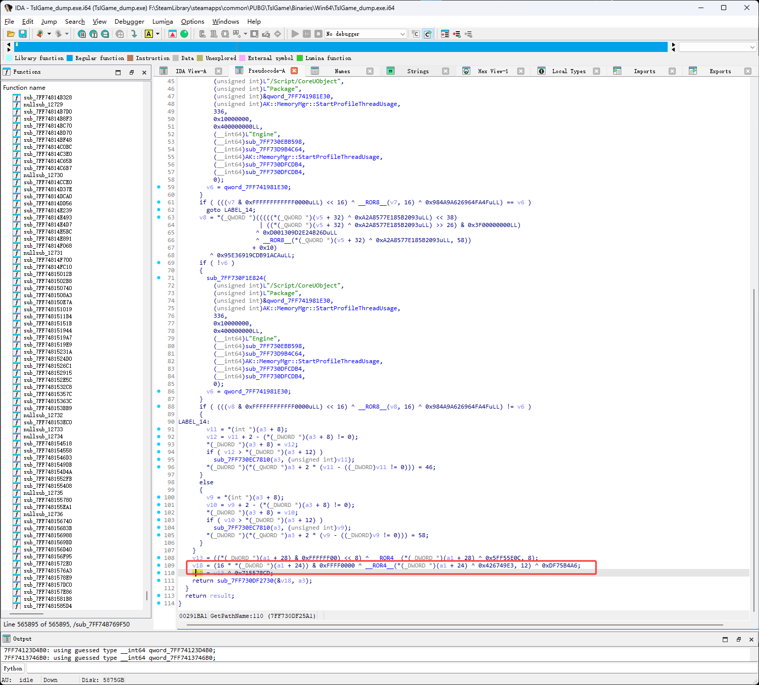 到这就把下图红框的4个加FName里的Number的解密全找到了,接下来就可以Dump游戏的sdk了