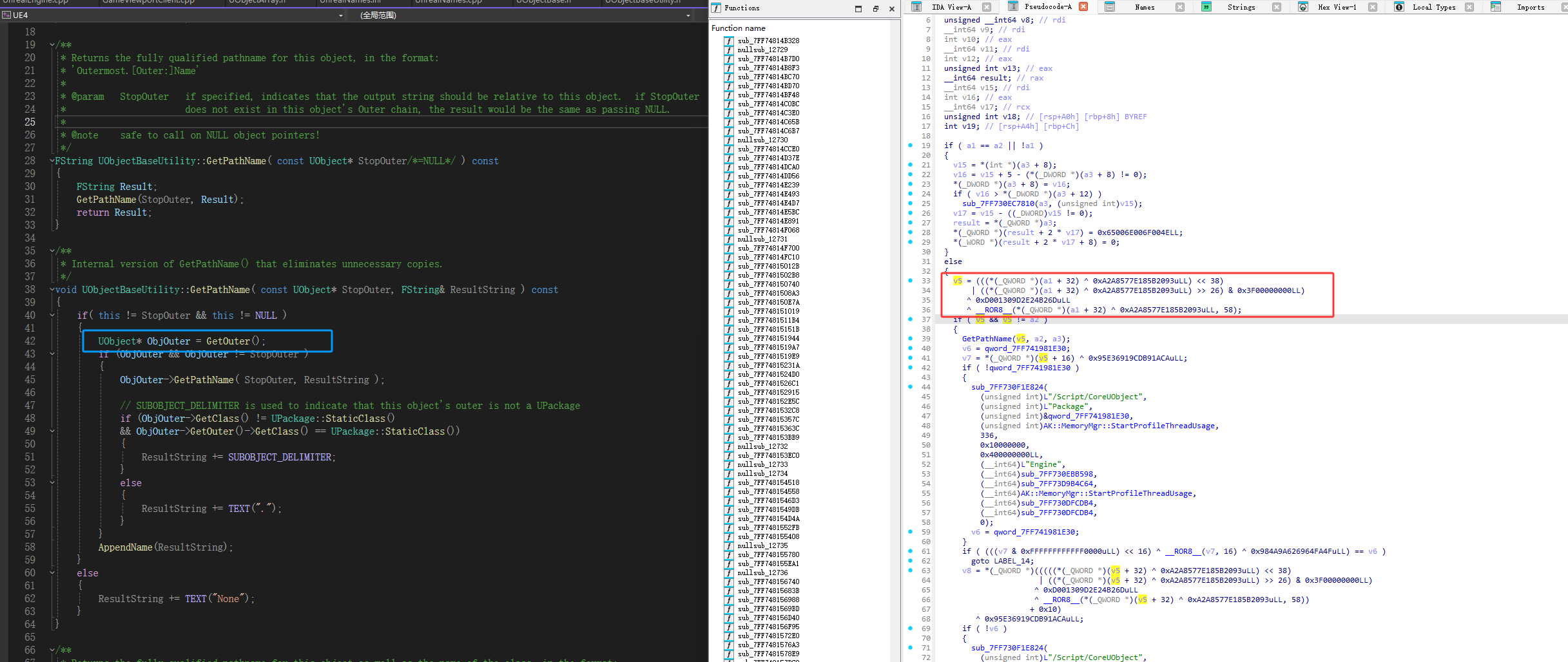 通过对比UE源码,可以更进一步确定它是GetPathName函数,特征太明显了