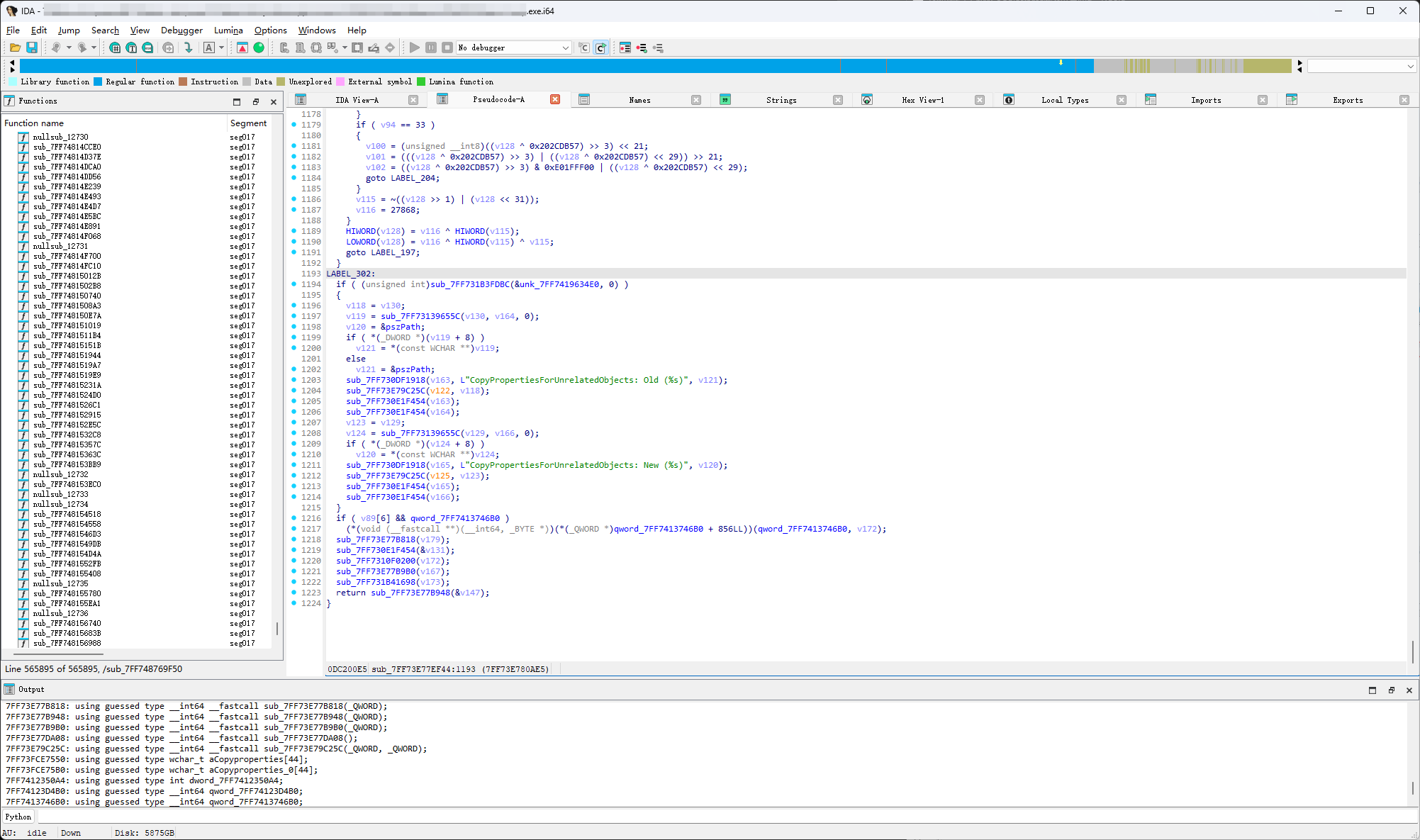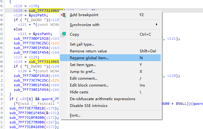 为了方便观察给sub_7FF73139655C改一个名,鼠标右击选择Rename global item