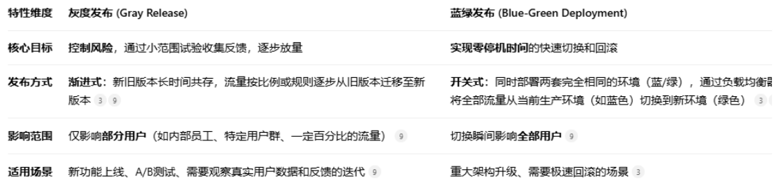灰度发布在实践中应用非常广泛,主要包括:新功能或产品上线:在全面推广前,先让小部分用户(如内部员工或种子用户)体验,验证功能效果和稳定性。