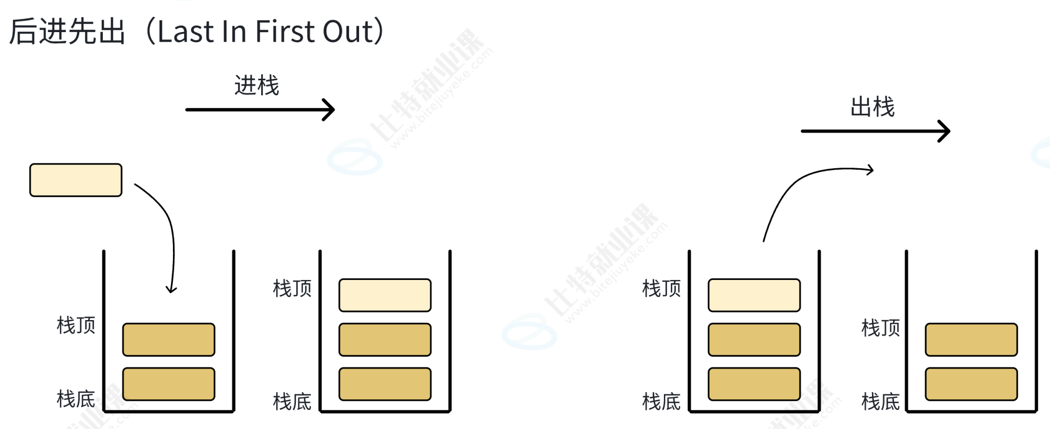 栈是一种特殊的线性表,他只能在一端插入删除数据,具有后进先出的特性LIFO(LAST IN FIRST OUT)