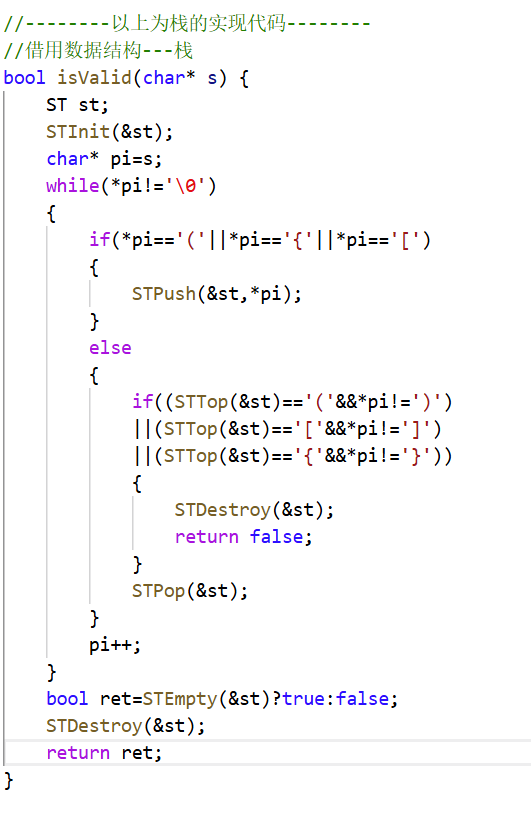 思路:左括号入栈,右括号和栈顶进行匹配,不匹配false,全部完了,剩左括号也false