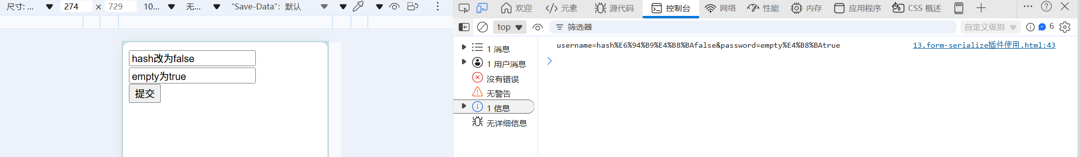 - 然后使用 serialize 函数,其中第一个参数是获取的哪一个表单元素的表单的值,第二个参数是一个配置对象(实际开发中只需要 hash 和 empty 即可)
