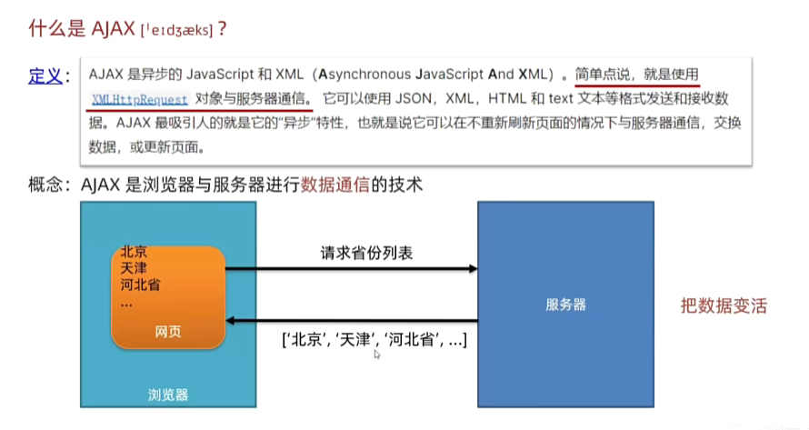 前言:AJAX是浏览器和服务器进行数据通信的技术