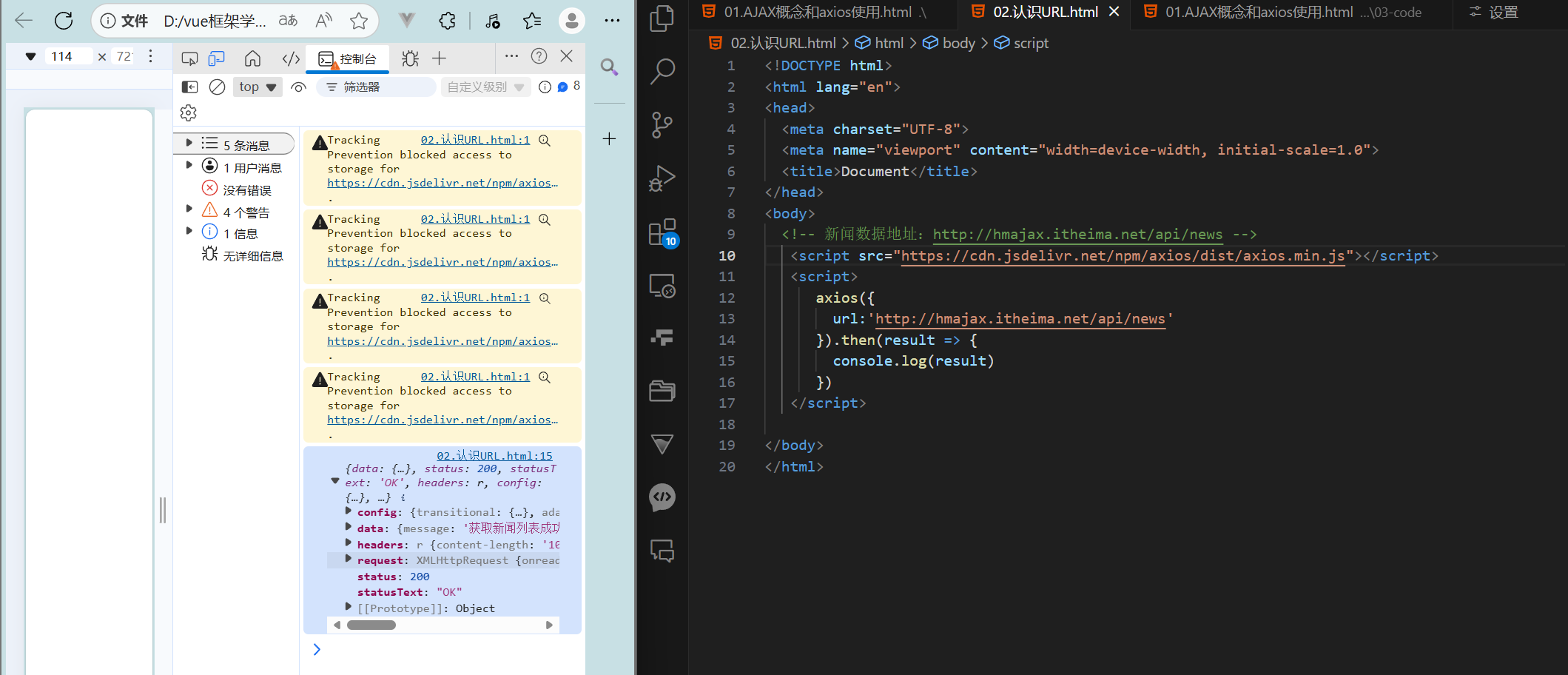 在此之前已经学习了引入 axios 第三方库进行获取 服务器数据,现在用来获取新闻数据也是一样的使用方法