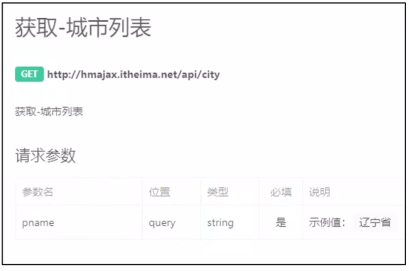 城市列表:http://hmajax.itheima.net/api/city?pname=河北省
