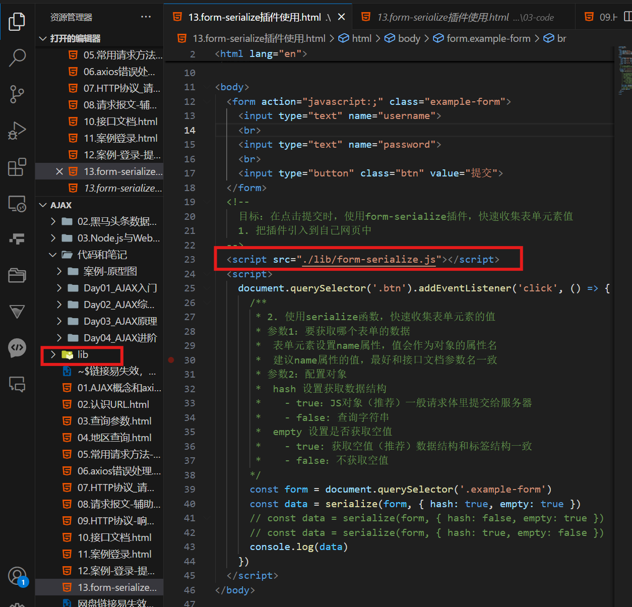 ①使用 form-serialize 插件,收集用户名和密码,完善登录案例