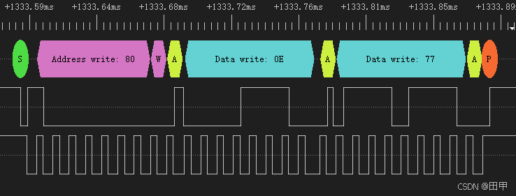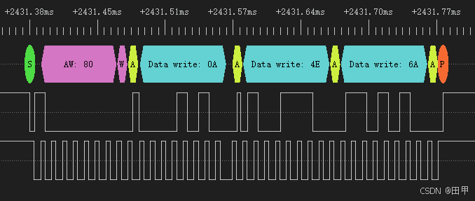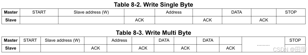 单字节写入和多字节写入比较类似,取绝于发送地址后接着发送多少字节。