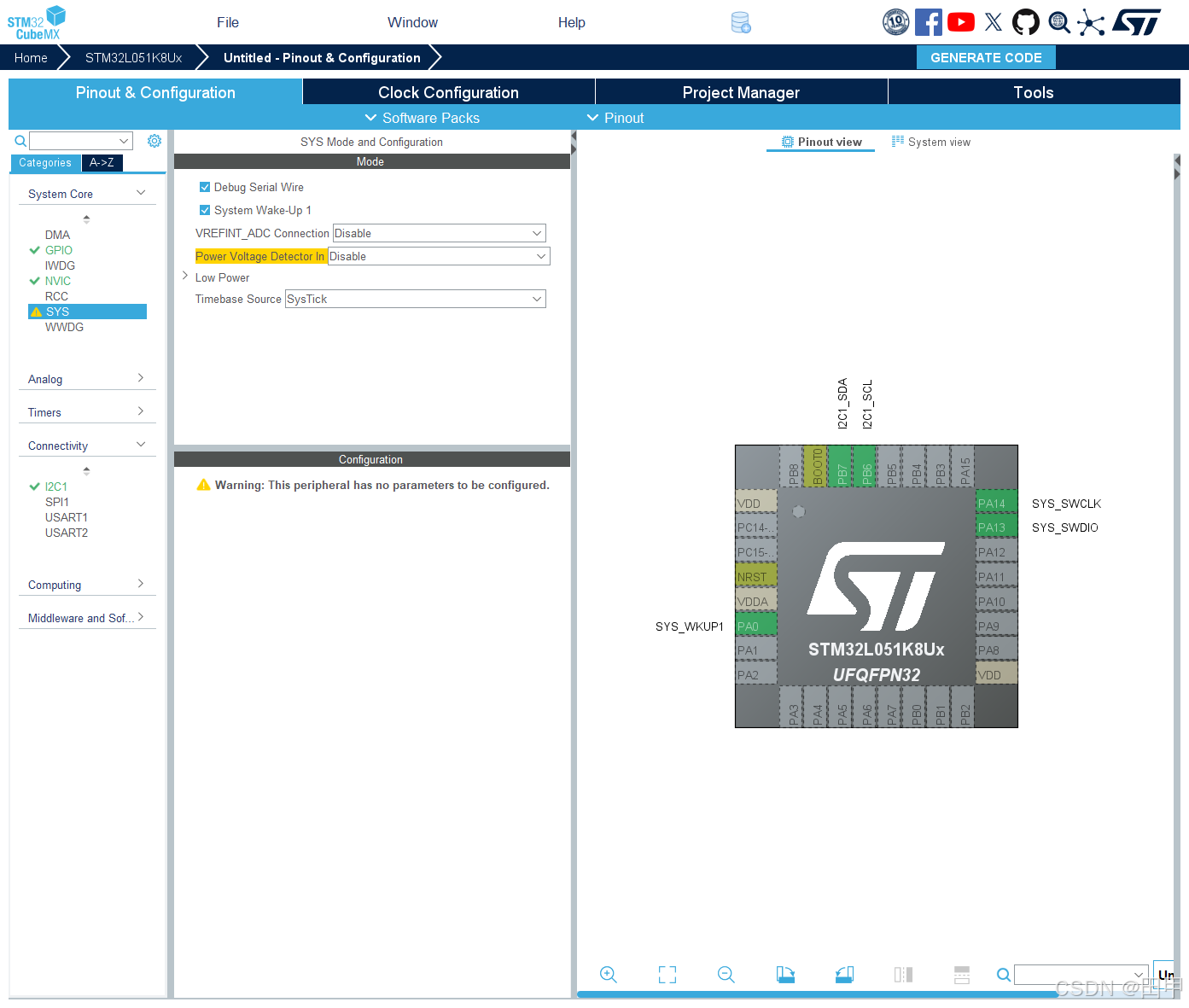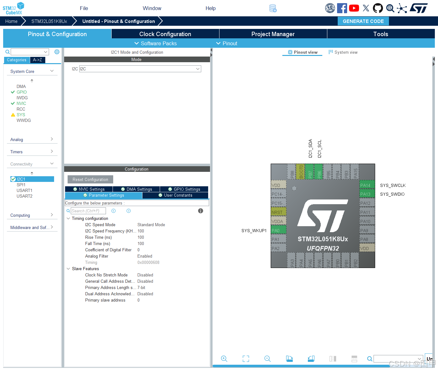 笔者使用STM32L051K8U6单片机作为MCU,是一款低功耗MCU。