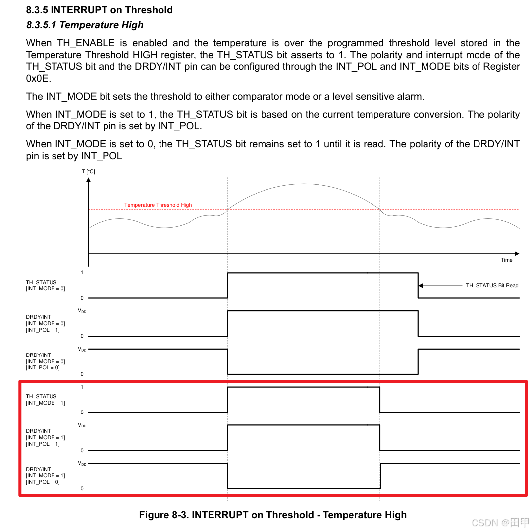 当芯片温度高于28度时DRDY引脚拉高,低于28度时自动恢复低电平