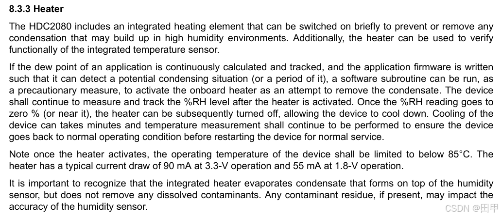当环境湿度太大,以至于传感器表面有水汽凝结怎么办?芯片贴心地准备了一个加热器,可以加热芯片使水汽蒸发。