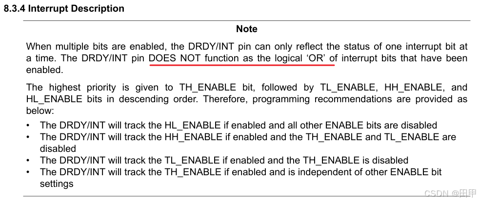 DRDY/INT引脚有数据准备和中断的功能,是开漏输出的。