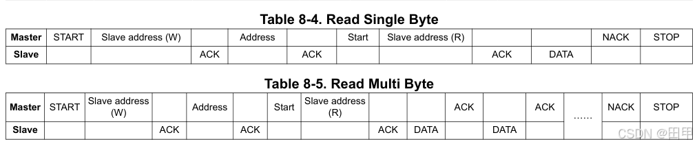 读取寄存器内容,需要先发送一个寄存器地址告诉芯片要从哪里开始读。