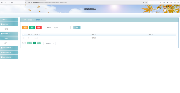 旅游攻略管理 | 测试管理员是否能够新增、编辑和删除旅游攻略 | 管理员能够成功操作旅游攻略的增、删、改功能 | 通过 |