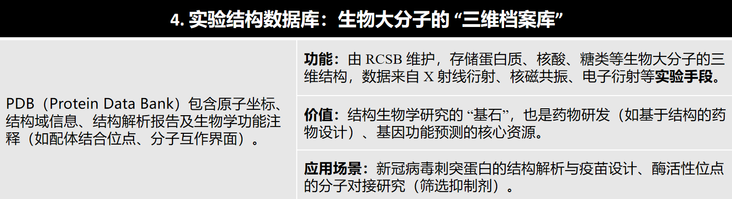 - 功能:存储 DNA、RNA 的三维结构信息,整合生物分子结晶学和核磁共振数据。