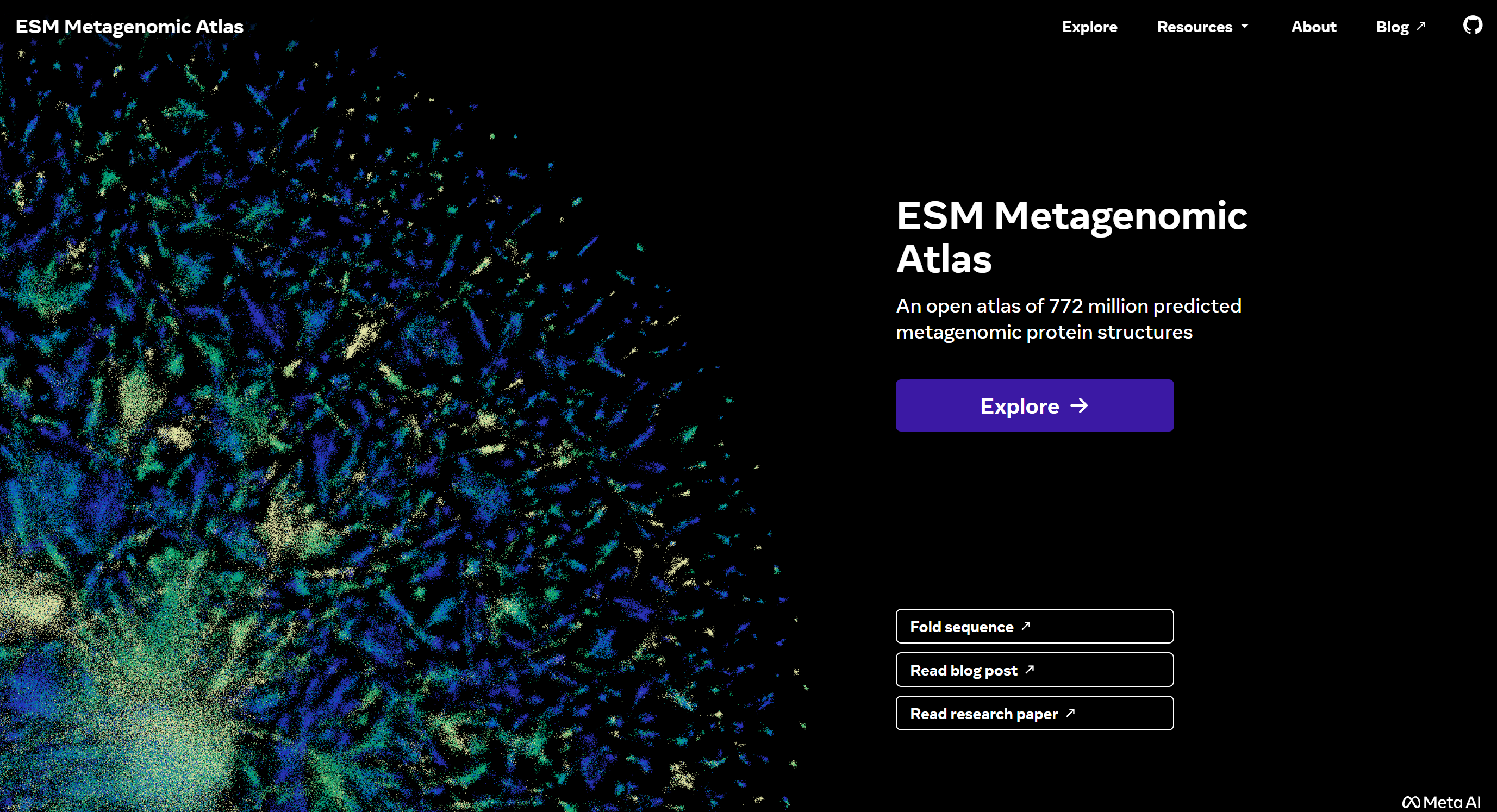 - 功能:基于 ESM(进化尺度模型)的语言模型,实现宏基因组蛋白质的高分辨率结构预测,是首个覆盖宏基因组的结构数据库。