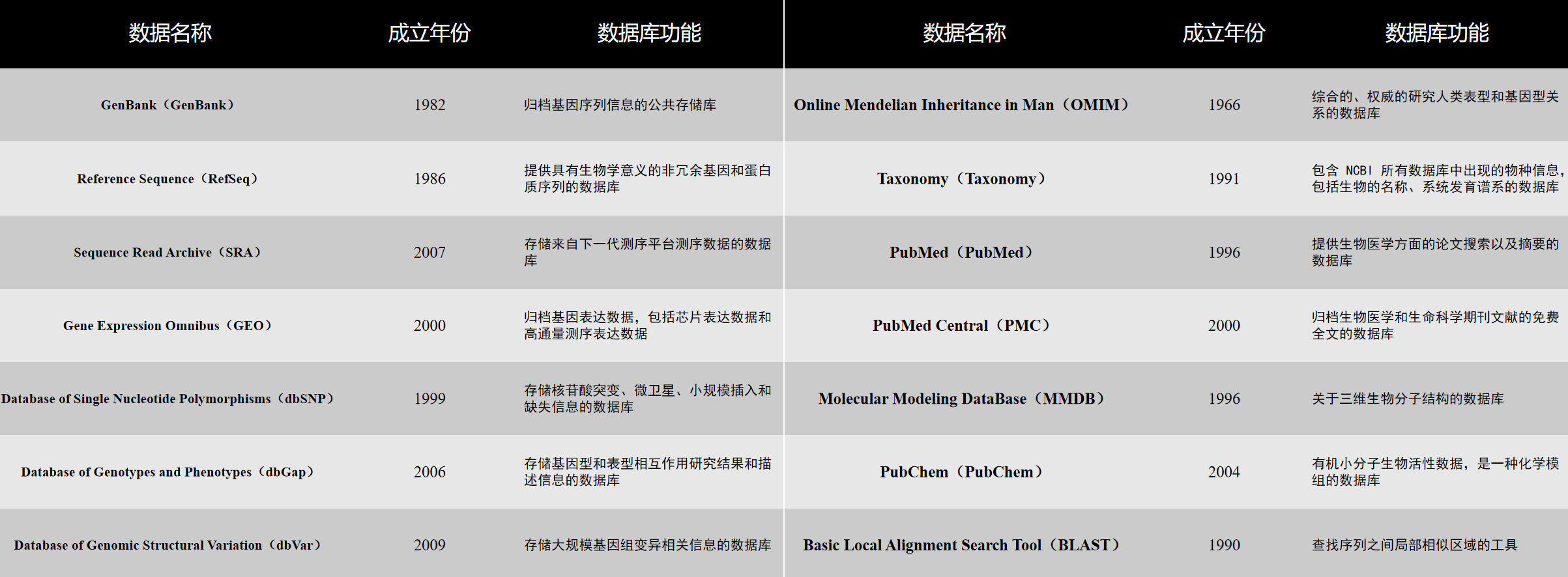 NCBI的主要目标是为科学家、医组学的广泛资源和工具,其代表性资源(可见下图)