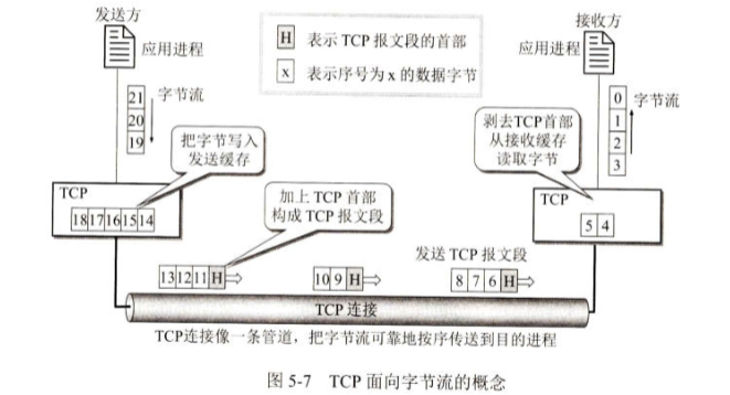 TCP把应用层交付的数据看作一串无结构的、连续的字节序列(即字节流)