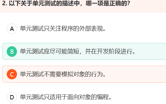 选项B正确,因为单元测试应尽可能简短以快速运行,并在开发阶段(如测试驱动开发)进行,这符合单元测试的最佳实践。选项A错误,因为单元测试不只关注外部表现,还包括内部实现细节;选项C错误,因为单元测试常需要模拟对象(如mock)来处理外部依赖;选项D错误,因为单元测试适用于各种编程范式,包括面向对象、过程式和函数式编程。