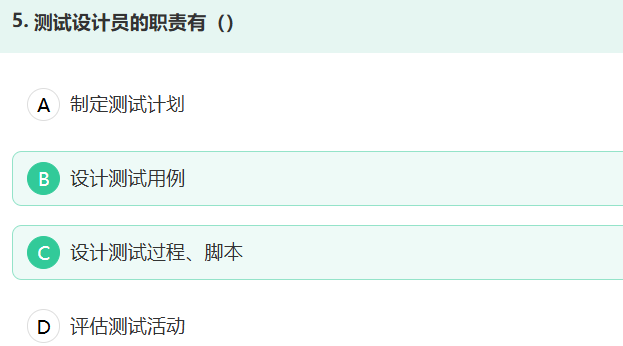 D选项"评估测试活动":这也属于测试管理层的职责。测试活动的整体评估需要从更高的层面来把控,包括测试效果、测试覆盖率等分析工作,不是测试设计员的职责范围。