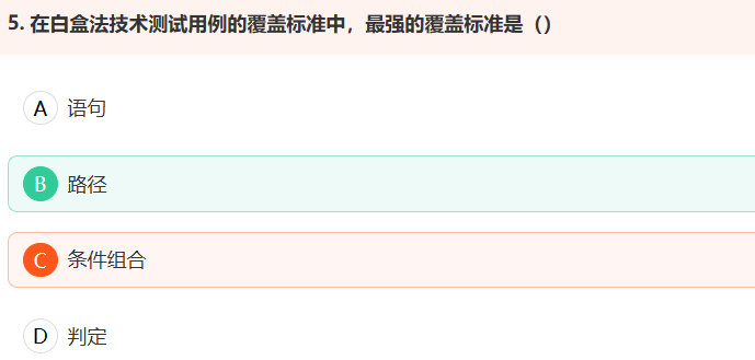 语句覆盖<判定覆盖<条件覆盖<语句/判定覆盖<条件组合覆盖<路径覆盖