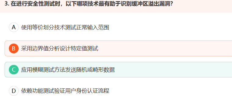 B选项(边界值分析)虽可能涉及边界但主要针对功能边界而非安全漏洞