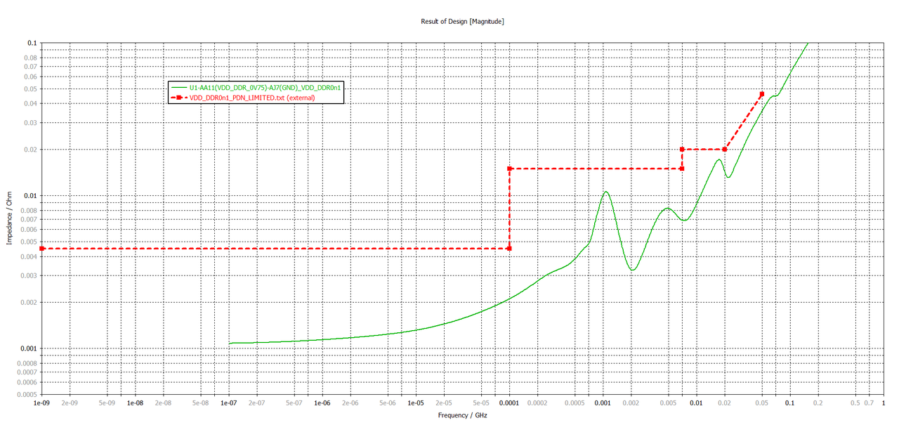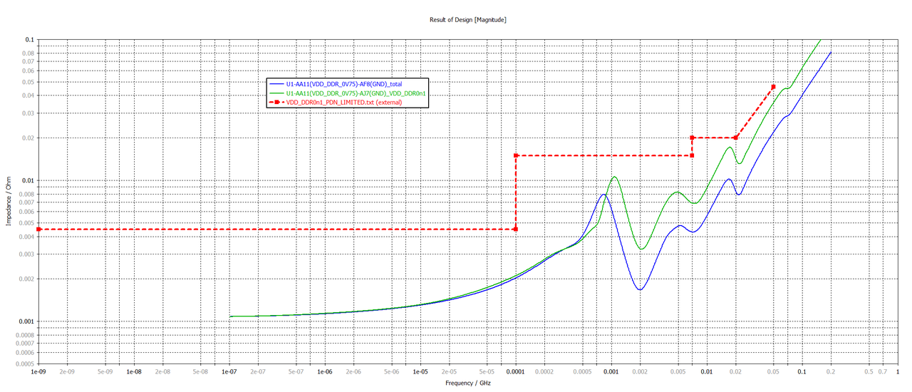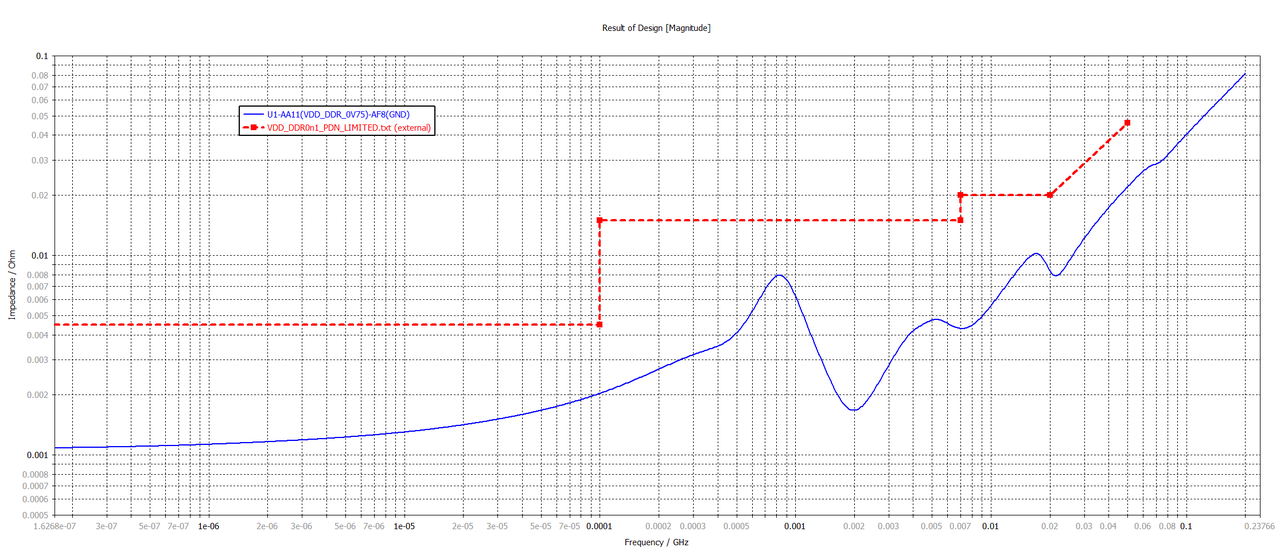 三,VDD_DDR0N1的电源网络PDN的仿真结果如下所示: