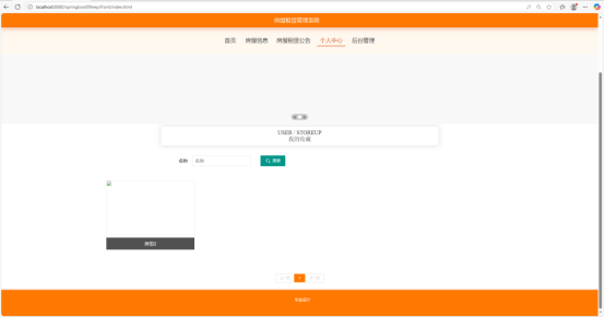 我的收藏页面是用户管理自己收藏房源的区域。页面上方设有搜索栏,方便用户根据关键词快速查找已收藏的房屋。下方以列表形式展示收藏的房屋信息,包括房屋名称、类型等关键信息,方便用户浏览和管理自己感兴趣的房源,随时查看收藏房屋的主要特征,便于后续进行租赁决策。搜索栏支持模糊搜索,即使只输入部分关键词,也能快速定位到相关收藏房源。列表中的房屋信息展示简洁明了,同时会根据房屋的热门程度或收藏时间进行排序,让用户能快速找到重点关注的房源。如图5-4所示。