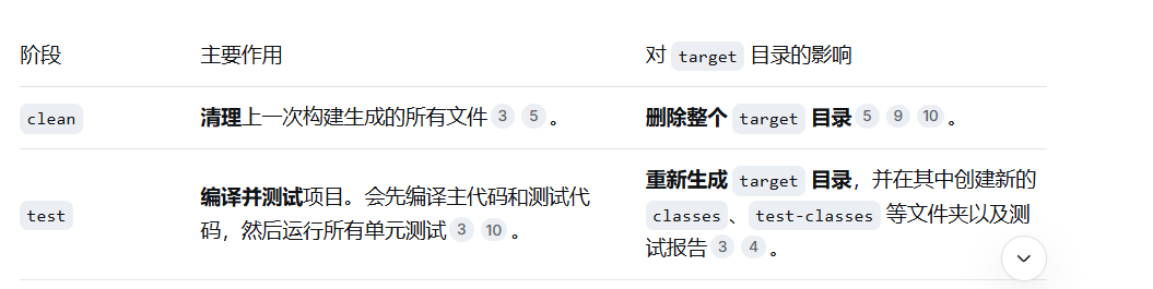 mvn clean test 命令会删除整个 target 目录,然后重新编译和测试你的项目